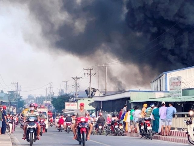 Cháy lớn tại công ty sản xuất bao bì ở Tiền Giang