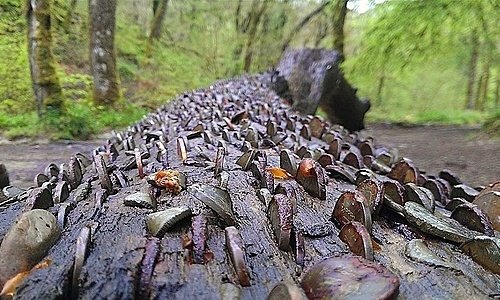 Ngay cạnh ngôi làng du lịch Portmeirion là những thân cây gắn chi chít xu lẻ. Cây này bị đốn hạ, "cây tiền" khác lại xuất hiện.