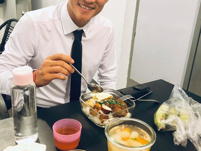 Cựu tuyển thủ Việt Nam hạnh phúc khoe cơm hộp do vợ chuẩn bị và tiết lộ điều thú vị.