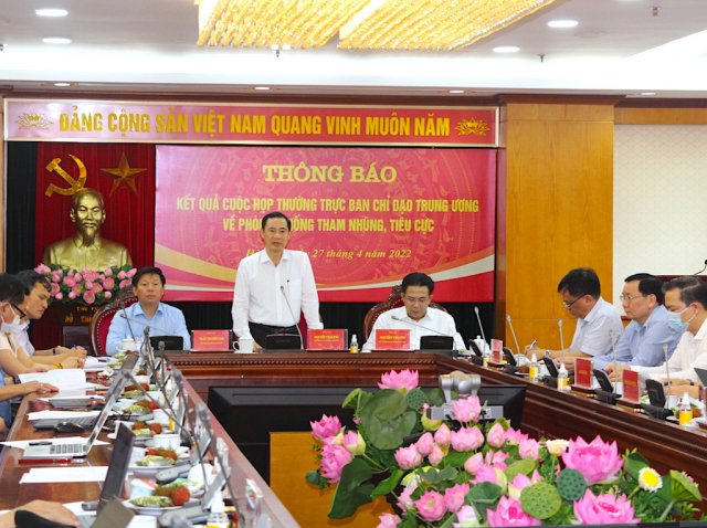 Sáng 27/4, tại Hà Nội, Thường trực Ban Chỉ đạo Trung ương về phòng, chống tham nhũng, tiêu cực (Thường trực Ban Chỉ đạo) đã tổ chức Cuộc họp dưới sự chủ trì của đồng chí Tổng Bí thư Nguyễn Phú Trọng, Trưởng Ban Chỉ đạo để thảo luận, cho ý kiến chỉ đạo xử lý các vụ án, vụ việc thuộc diện Ban Chỉ đạo theo dõi, chỉ đạo.