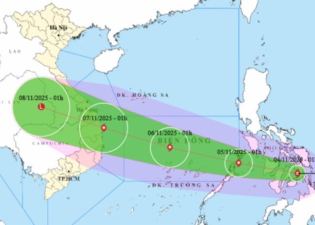 Bão Kalmaegi cường độ rất mạnh, hiện cấp 13, giật cấp 13, dự báo sáng 5/11 sẽ đi vào Biển Đông và gây đợt mưa lớn khu vực Quảng Trị - Đắk Lắk khoảng 6-9/11.