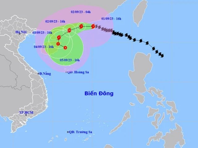 Bão số 3 liên tục đổi hướng, lúc 16h ngày 1/9, sức gió mạnh nhất vùng gần tâm bão mạnh cấp 14-15 (150-183 km/h), giật trên cấp 17.