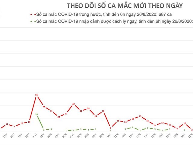 Sáng sớm 26.8, Ban Chỉ đạo Quốc gia phòng chống dịch bệnh COVID-19 cung cấp thông tin về tình hình dịch bệnh COVID-19. Tính đến sáng nay Việt Nam không ghi nhận thêm ca mắc mới, số ca mắc liên quan đến Đà Nẵng là 547 ca.
