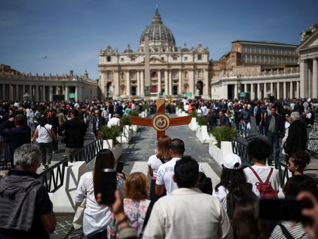 Quảng trường Thánh Peter chật kín người hôm 21/4 sau thông báo Đức Giáo hoàng Francis qua đời.