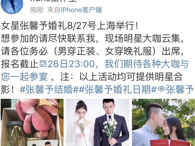 Vé vào cổng lễ cưới của Trương Hinh Dư - kẻ thù không đội trời chung với Phạm Băng Băng đang được bán trên Weibo khiến nhiều người ngạc nhiên.