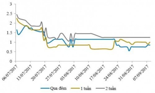 Sau hai tuần giảm liên tục, lãi suất qua đêm trên thị trường liên ngân hàng tuần qua đã tăng trở lại 0,05% cho dù trong tuần, NHNN tiếp tục bơm ròng gần 2.000 tỷ đồng. Điều này cho thấy thanh khoản hệ thống tuần qua có phần bớt dư thừa hơn.