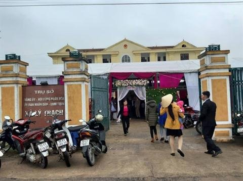 Chủ tịch xã nói rằng trong ngày hôm đó trên địa bàn có đến 5 đám cưới diễn ra cùng ngày nên không còn địa điểm để tổ chức, một cán bộ đề xuất nguyện vọng nên cơ quan cũng tạo điều kiện cho mượn sân trụ sở.