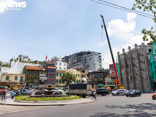 Sau khi phá dỡ tòa nhà "Hàm cá Mập", Hà Nội đang đẩy nhanh tiến độ, gấp rút thi công chỉnh trang các hạng mục như nhà hàng Thủy Tạ, mặt tiền phố Đinh Tiên Hoàng.