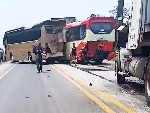 Xe tải đang đi trên đường Hồ Chí Minh đoạn qua thị xã Buôn Hồ, Đắk Lắk bất ngờ va chạm với xe khách và nhiều xe khác khiến ít nhất 7 người thương vong.