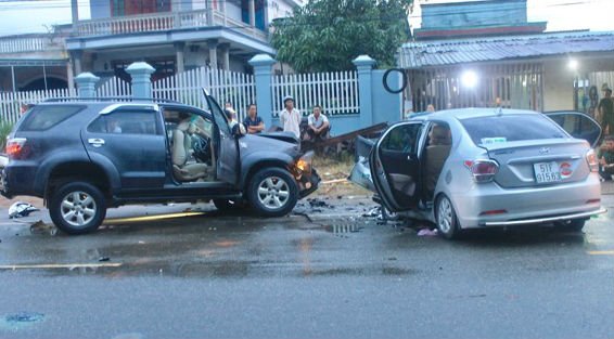 - Sau cú tông mạnh trực diện, phần đầu 2 ô tô nát bét. Vụ tai nạn khiến 2 người tử vong, 6 người khác bị thương nặng.