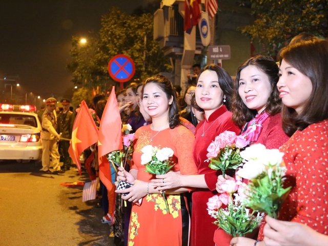 Người Hà Nội mang cờ, hoa đi đón Tổng thống Trump