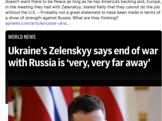 Tổng thống Ukraine Volodymyr Zelensky khẳng định cần cả Mỹ và châu Âu đảm bảo hòa bình lâu dài cho Kiev, cho rằng sự vắng mặt của Washington sẽ khiến tình hình rất "khó khăn".