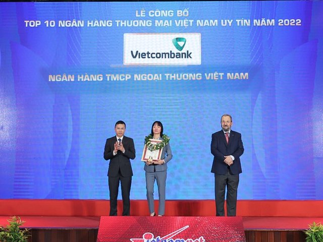 Ngân hàng TMCP Ngoại thương Việt Nam (Vietcombank) được vinh danh là đơn vị dẫn đầu bảng xếp hạng Top 10 Ngân hàng thương mại uy tín năm 2022 và thuộc Top 10 Công ty đại chúng uy tín, hiệu quả.