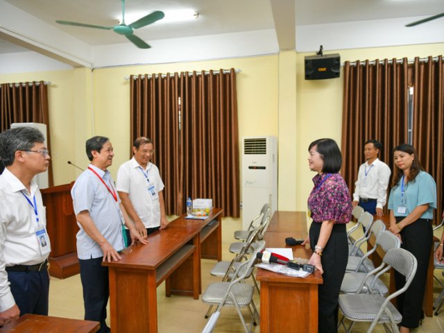 Sáng 28/6, trước buổi thi môn Ngữ Văn của Kỳ thi tốt nghiệp THPT năm 2023, Bộ trưởng Bộ GD&ĐT Nguyễn Kim Sơn đã tới kiểm tra Điểm thi Trường THPT Yên Mỹ, huyện Yên Mỹ, tỉnh Hưng Yên và động viên học sinh, giáo viên ở Điểm thi này.