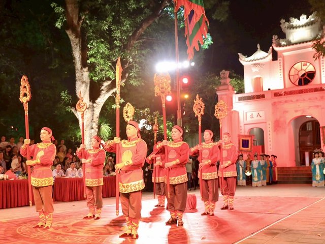 Màn tái hiện lại nét văn hóa đặc sắc trong tour đêm “Tiếng chuông Trấn Vũ” tại di tích quốc gia đặc biệt đền Quán Thánh (quận Ba Đình) đã đem đến cho du khách trải nghiệm thú vị.
