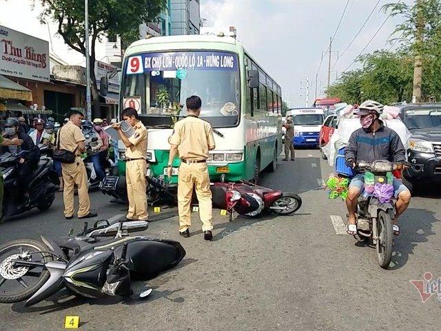 Xe buýt tông 8 xe máy trên phố Sài Gòn, người văng tứ tung