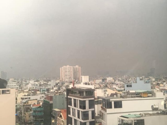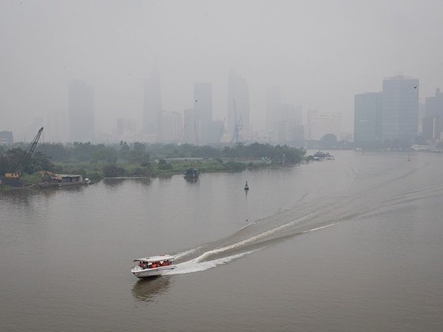 Sài Gòn xuất hiện lớp mù đặc quánh khiến tầm nhìn hạn chế, các tòa nhà như bị biến mất sau lớp màu trắng đục; ô nhiễm không khí đang ở mức nặng.