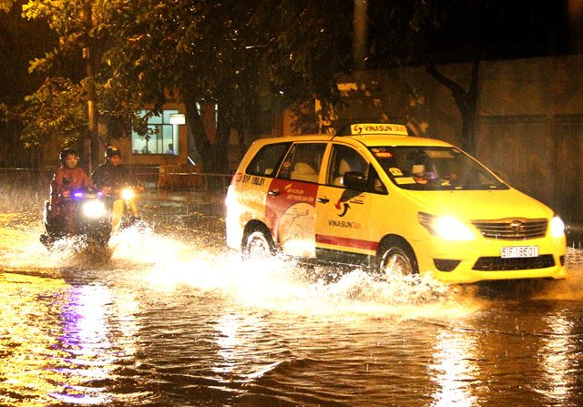 Cơn mưa kéo dài kèm theo sấm chớp và gió giật mạnh xuất hiện lúc nửa đêm khiến nhiều tuyến đường ở Sài Gòn biến thành sông.