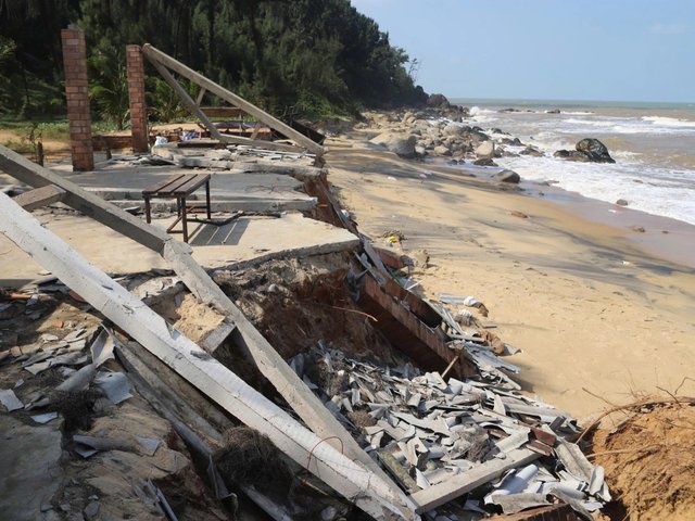 Những đợt bão lũ liên tiếp khiến bờ biển Hàm Rồng (xã Vinh Lộc, TP Huế) bị xâm thực mạnh, nhiều hàng quán bị tàn phá và đang đứng trước nguy cơ bị xoá sổ.