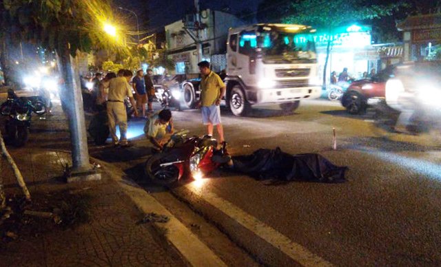 Sau khi xảy ra va chạm khiến người đàn ông chạy xe máy chết tại chỗ, tài xế lái xe đầu kéo container bỏ chạy.