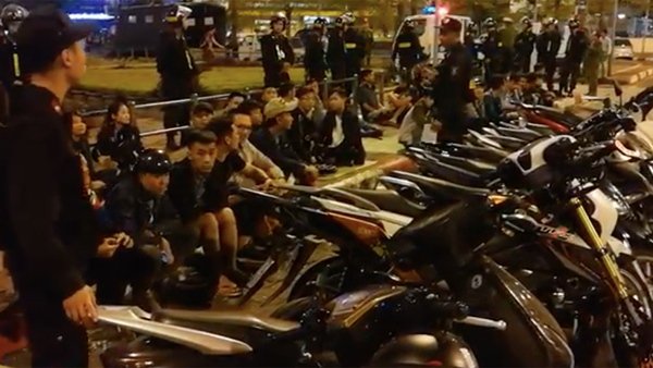 Hàng trăm CSCĐ, cảnh sát 113 bao vây nhóm thanh niên tụ tập trà đá tại ngã tư Xã Đàn - Đại Cồ Việt, Hà Nội tối qua. 29 xe máy cùng 1 đối tượng mang theo ma tuý bị tạm giữ, gần 50 thanh niên bị đưa về đồn.