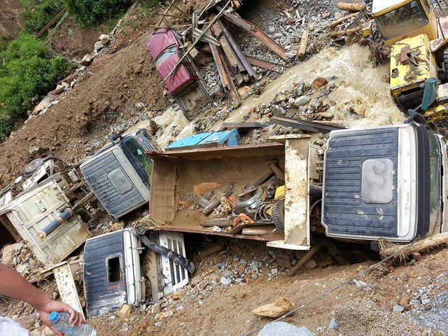 Hàng chục chiếc ô tô bị lũ cuốn, lật ngửa dưới lòng suối ở Trạm Tấu, Yên Bái.