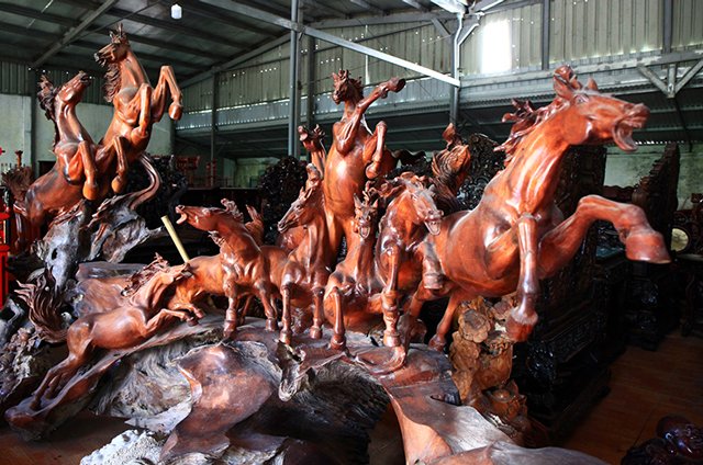 Ông Thuấn tình cờ thấy gốc gỗ hương vứt chỏng chơ bên bờ suối, ông đã mang về chế tác thành bộ “Bát mã“, nay có giá trị lên đến 7 tỷ nhưng ông vẫn chưa bán.