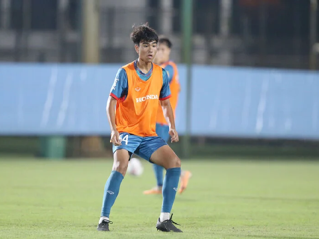 Tiền vệ U18 Việt Nam Nguyễn Công Phương được huấn luyện viên Philippe Troussier đưa lên tập cùng đội tuyển quốc gia.