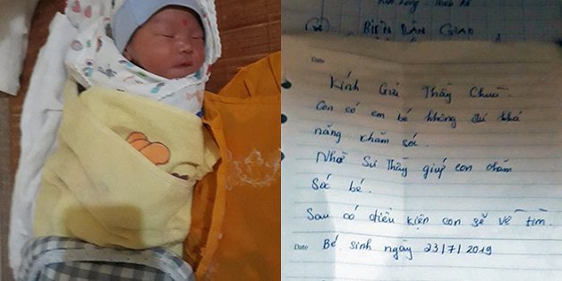 Người mẹ bỏ lại con ở cổng chùa với lời nhắn: “Con có con bé không đủ khả năng chăm sóc. Nhờ sư thầy giúp con chăm sóc bé. Sau này có điều kiện con sẽ về tìm”.