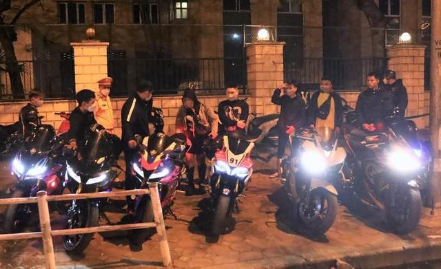 Hàng loạt quái xế nẹt pô rú ga trên đường Võ Chí Công, quận Tây Hồ, Hà Nội bị bắt giữ