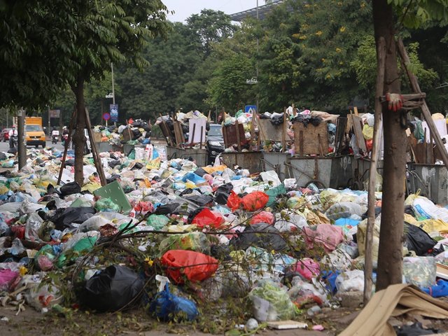 Rác ùn ứ trên nhiều tuyến phố Hà Nội