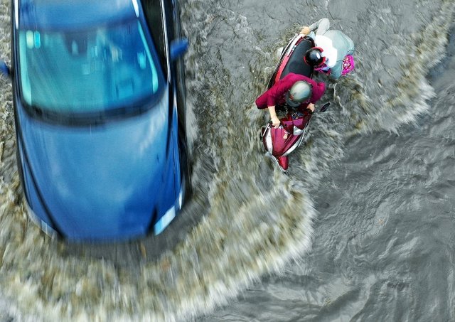 Ngập sâu khắp Cần Thơ, dân cưỡi xe "bơi" phăng phăng trên đường
