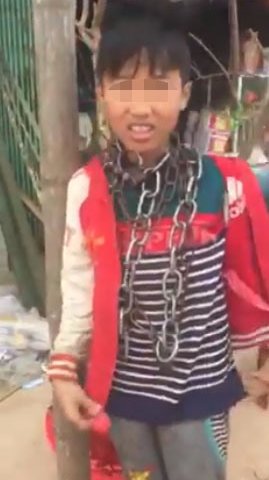 Chiều 28.2, cộng đồng mạng xã hội xôn xao về một clip do Facebook Thành Phan chia sẻ với lời nhắn: “Cháu này ở xã Khuyến Nông, huyện Triệu Sơn (Thanh Hóa). Một giọt máu đào hơn ao nước lã.... Mọi người chia sẻ giùm để cơ quan chức năng vào cuộc giúp cháu” bị người thân gông lên mình 2 sợi xích sắt đang được đặc biệt quan tâm. Chỉ sau 5h đồng hồ, đã có hơn 28.000 lượt chia sẻ.