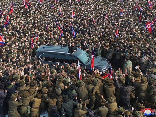 Biển người vây quanh xe chở nhà lãnh đạo Triều Tiên Kim Jong-un