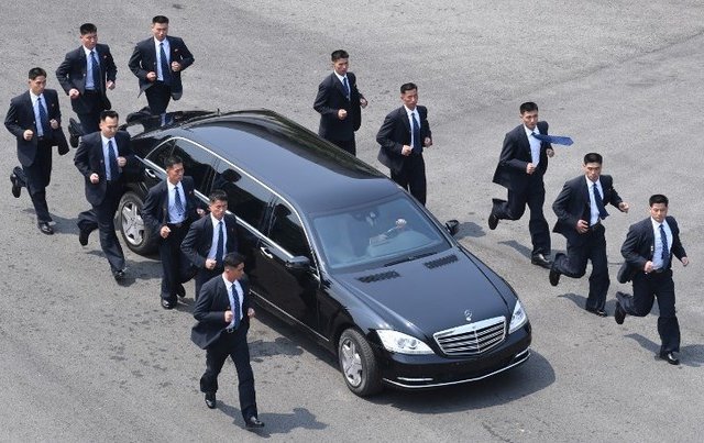 12 vệ sĩ chạy quanh xe bảo vệ Kim Jong-un