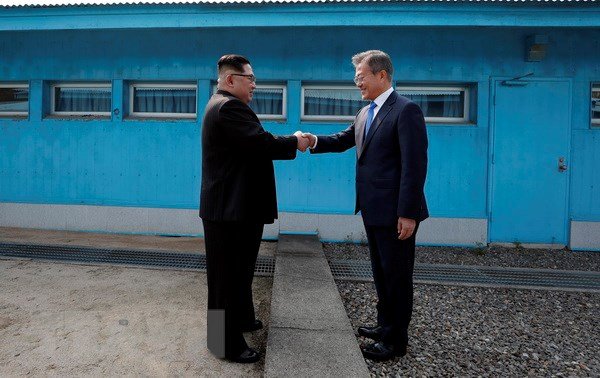 Tổng thống Hàn Quốc Moon Jae-in và nhà lãnh đạo Triều Tiên Kim Jong-un đã bắt đầu cuộc đàm phán lịch sử vào sáng sớm ngày hôm nay 27/4 bằng một cái bắt tay tại khu vực phi quân sự ở biên giới.