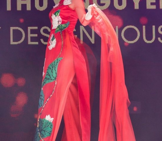<h1>Người đẹp diện áo dài 100 triệu đồng khi biểu diễn tại bế mạc Lễ hội Áo dài TP HCM, tối 26/3.</h1>