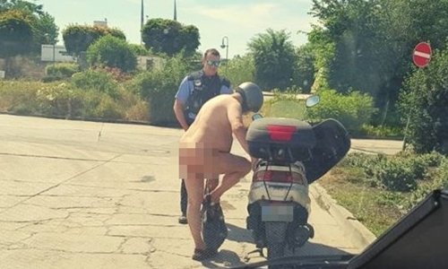 Người đàn ông Đức khỏa thân lái xe máy vì trời nóng