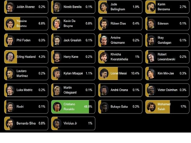 Cristiano Ronaldo bỏ xa Lionel Messi và các ứng viên còn lại trong cuộc bầu chọn danh hiệu cầu thủ xuất sắc nhất năm của Giải thưởng bóng đá toàn cầu.