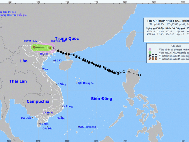 Khả năng trong 1-2 ngày tới vùng áp thấp đang hoạt động ngoài khơi Philippines sẽ mạnh lên thành áp thấp nhiệt đới, bão và khả năng cao đây sẽ là cơn bão số 2 ảnh hưởng đến nước ta trong những ngày cuối tháng 7/2023.