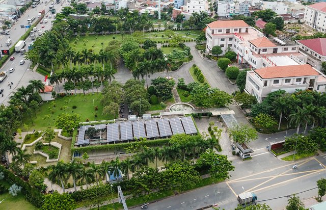 Trụ sở UBND lắp điện mặt trời, có cảnh quan như công viên ở Sài Gòn