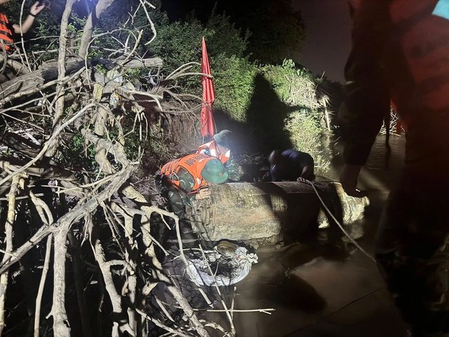 Thầy giáo khiêng xe máy băng qua nước lũ đến trường