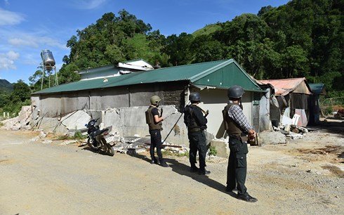 Máy xúc, máy ủi sẽ được đưa vào hiện trường sau khi gần 300 cảnh sát kết thúc chiến dịch tấn công nơi ẩn náu của hai trùm ma túy ở thung lũng Tà Dê.