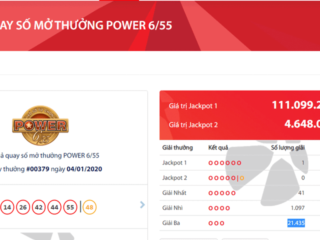 Chủ nhân của giải độc đắc Jackpot 111 tỷ đồng tại kỳ quay số sản phẩm Power 6/55 lần thứ 379 tối 4/1 đến từ Bình Dương.