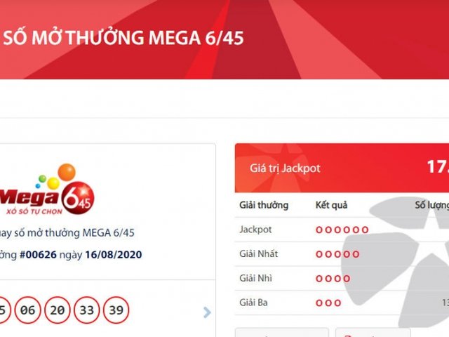 Giải Jackpot 1 trị giá hơn 40 tỷ của loại hình xổ số tự chọn Power 6/55 được tìm thấy hôm qua thì giải Jackpot hơn 17 tỷ của loại hình xổ số tự chọn Mega 6/45 của Vietlott diễn ra tối nay cũng tìm được chủ nhân.