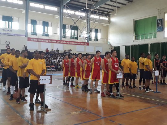 Hơn 20 quân nhân trên tàu sân bay USS Carl Vinson của Hải quân Mỹ đã đến Trung tâm Giáo dục Thể chất, Trường Đại học Bách khoa Đà Nẵng để thi đấu bóng rổ với sinh viên trường này.