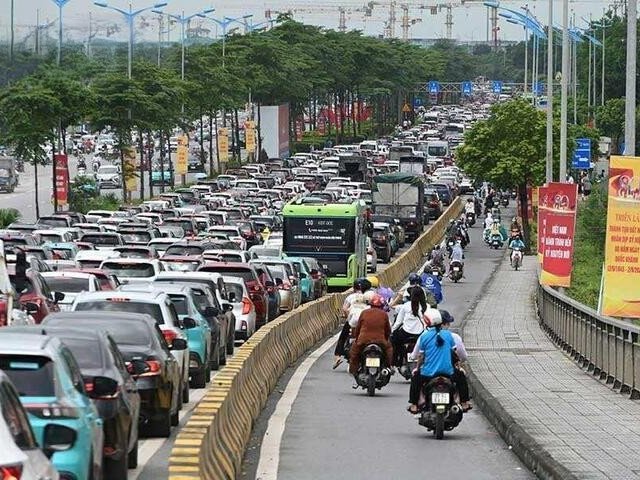Chiều 31/8, dòng người nườm nượp đổ về Trung tâm Hội chợ Triển lãm quốc gia khiến các tuyến đường xung quanh khu vực này ùn ứ kéo dài 5km.
