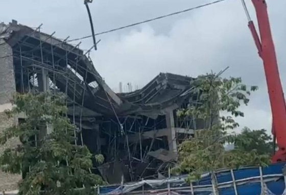 Trung tâm Văn hoá huyện Tuyên Hoá, Quảng Bình đang thi công bất ngờ đã bị đổ sập, làm 2 người bị thương.