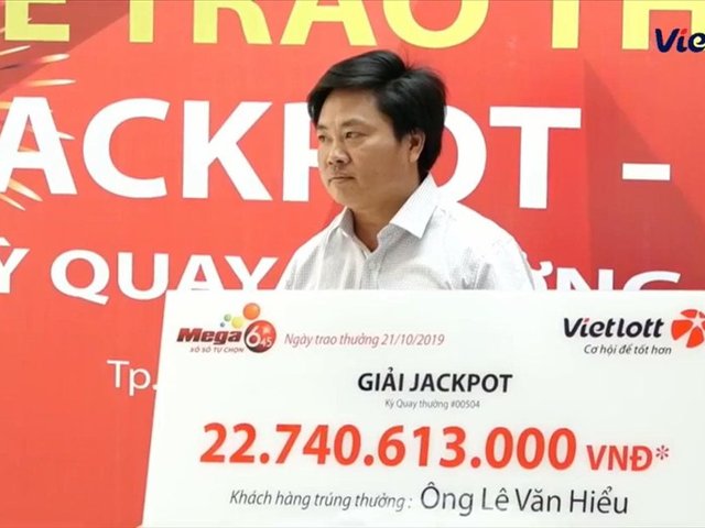 Sáng 21.10, ông Lê Văn Hiểu (ngụ tỉnh Khánh Hoà) - chủ nhân của giải độc đắc Vietlott trị giá hơn 22 tỉ đồng đã công khai danh tính khi lên nhận thưởng.