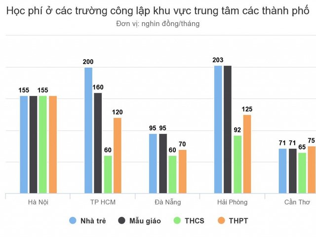 Học phí trường công lập ở 5 thành phố trực thuộc trung ương